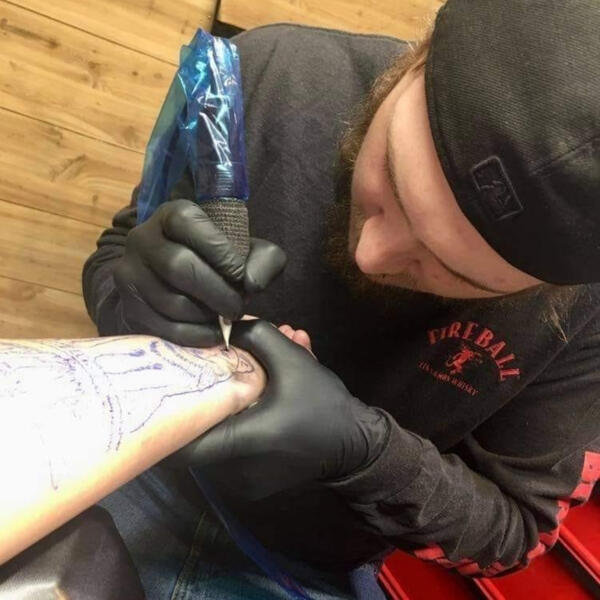 Tyler Roberts opened Ink'd Tattoo Parlor in 2020, in the midst of the pandemic. He originally opened shop in the same location that he had previously worked for, under another artist. After his first year, he was able to move into a bigger shop where he could continue to grow his business.